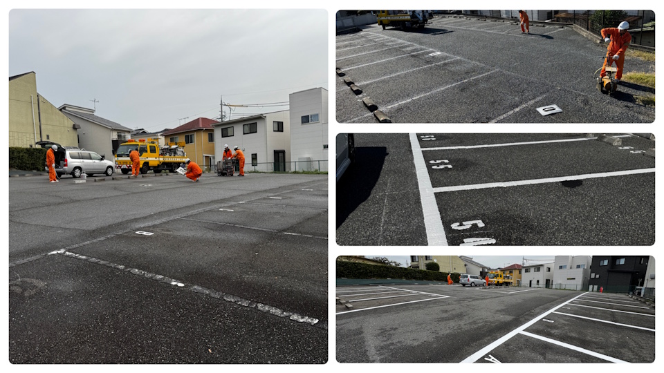 また、今回依頼させていただいた白線引き直し業者さんのご配慮もあり、通常であれば一日で出来る区画数ですので、1日で終えたいと思うはずですが、同日でなくても可。とおっしゃってくださった事が何よりも助かりました。