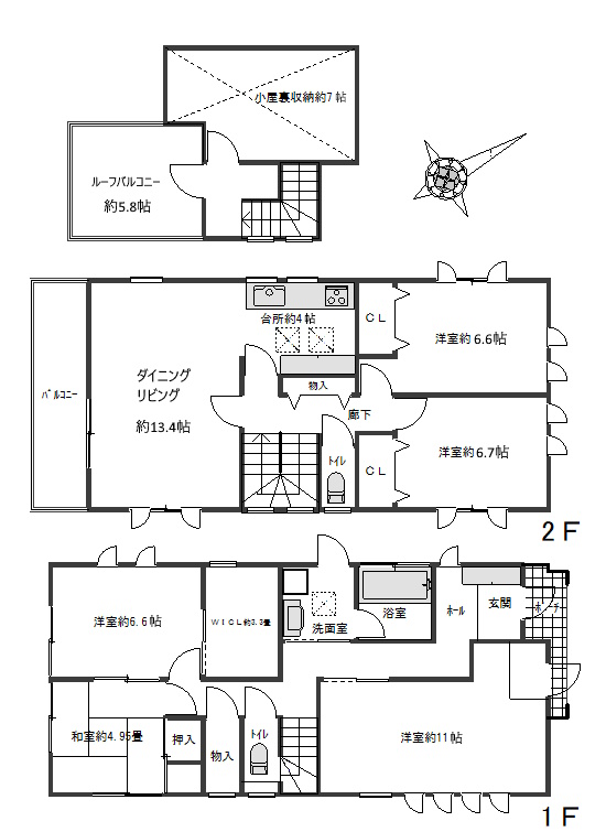 | 設備・条件 | システムキッチン エアコン W.INクローゼット オール電化 ルーフバルコニー,床下収納,小屋裏収納, |